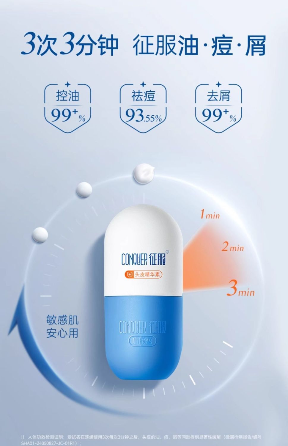 创新青蒿双萃体系采用了青蒿液“与青篙油”,水溶性与脂溶性青蒿复配,令青蒿精华高透头皮,直击油、痘、屑,营造稳定的头皮环境。